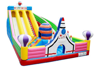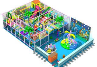 该游乐场以 “奇幻童话城堡”为主题,精致、绚丽的城堡造型,深受孩子们的喜爱。右边是一个滑梯,孩子们可以在城堡里尽情的玩耍,然后从滑梯上滑下来。让孩子们仿佛在沉浸在美丽的 “童话时光”里。