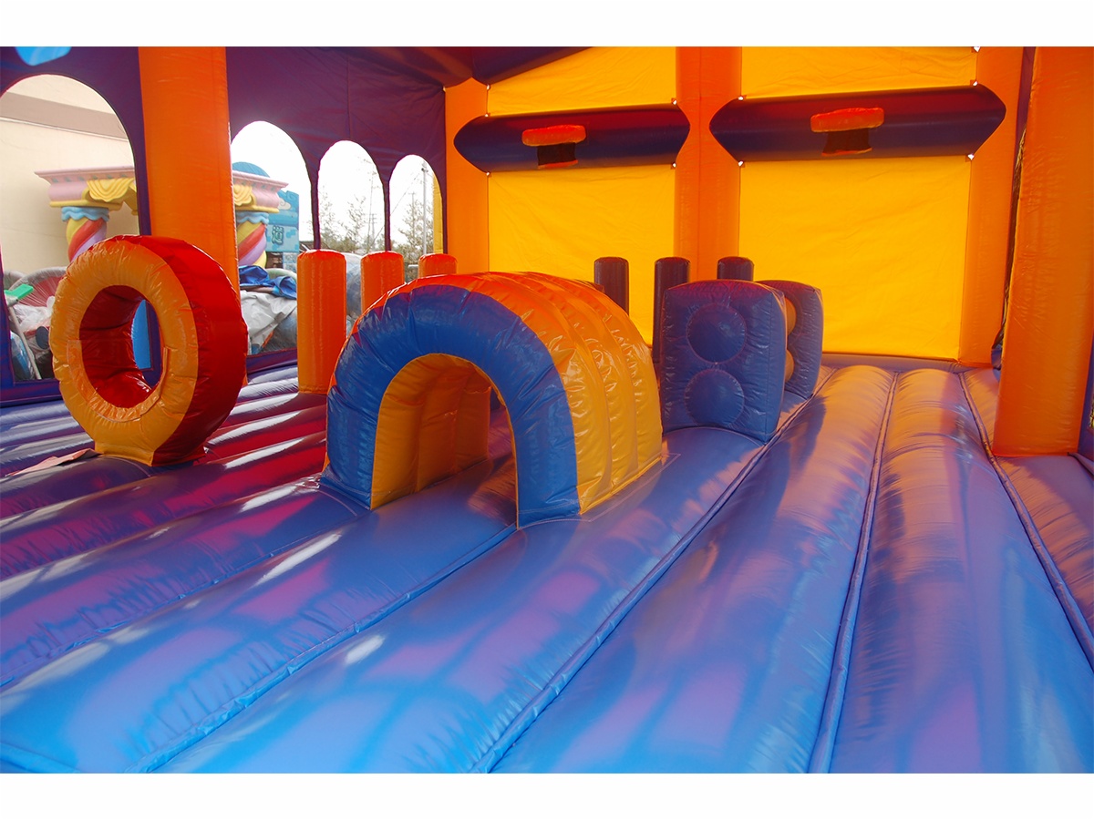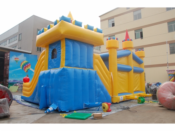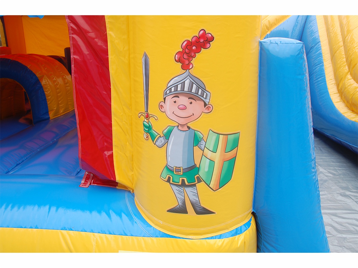 该游乐场以 “奇幻童话城堡”为主题,精致、绚丽的城堡造型,深受孩子们的喜爱。右边是一个滑梯,孩子们可以在城堡里尽情的玩耍,然后从滑梯上滑下来。让孩子们仿佛在沉浸在美丽的 “童话时光”里。
